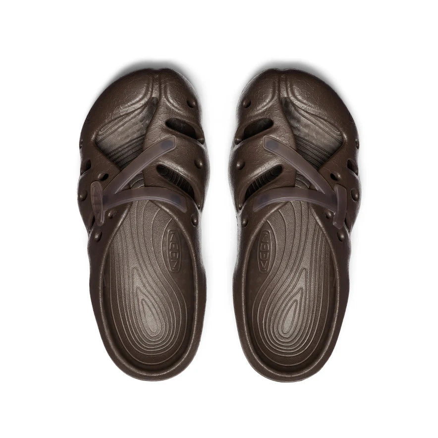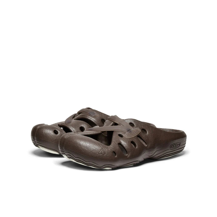 Our über light and comfy open-air clog gets a nautical-inspired design with Pilgrim Surf + Supply's version of a brown and white boat shoe.