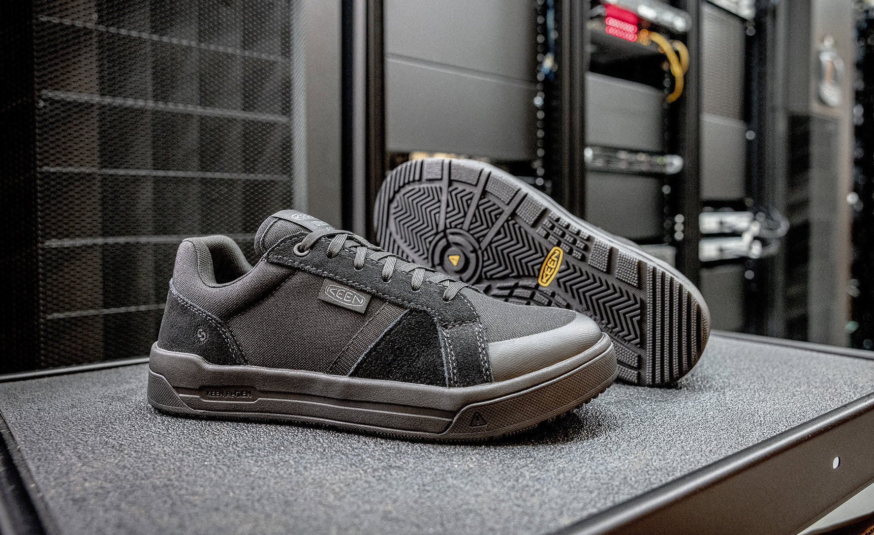 Retro-inspired ESD soft toe work shoe reinvented with lightweight safety features, active fit, and energy-returning comfort for tasklists that don’t quit.